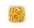 Roasted corn, cilantro, parmesan cheese, mayonnaise, green onion, red pepper, spices and lime juice.
