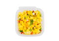 A blend of fresh cut mango, papaya, red pepper, jalapeno, pineapple, green pepper, yellow onion, orange, cilantro.